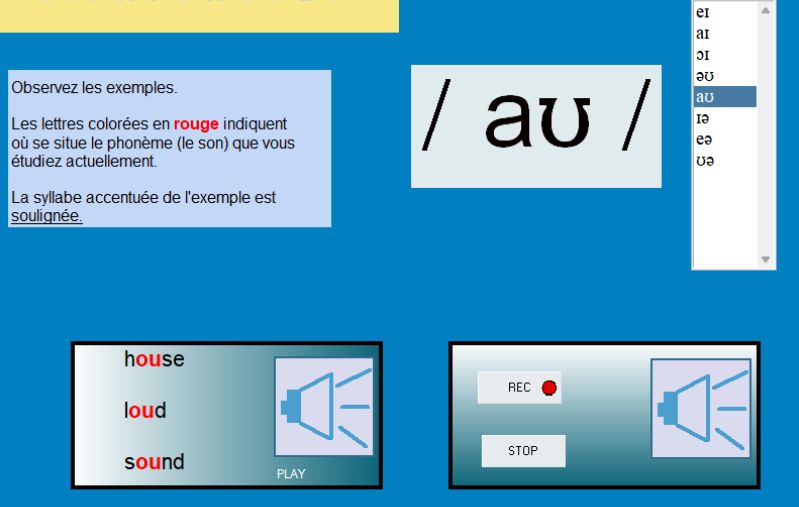 HearSay lab lets you learn and practise the phonetics alphabet in English so that you can dramatically improve your pronunciation skills !!Indeed, getting to know the phonetics alphabet will let you correctly interpret the phonetic transcription of ANY new word that you'll be checking in your dictionary, so that you'll be able to pronounce words that you'll never have heard before !The program offers two modules :In the "Learn" Module, you'll familiarize yourself with each phonetics symbol , its pronunciation within short key-words , and you'll have the opportunity to record yourself and compare your pronounciation to the model.In the "Practice" Module, a simple and fun game will ask you to match a recorded word with the correct symbol.Avec HearSay Lab, découvrez, écoutez et enregistrez les sons / phonèmes de l’anglais , pour améliorer vos compéténces orales : -compréhension orale de l’anglais-expression orale