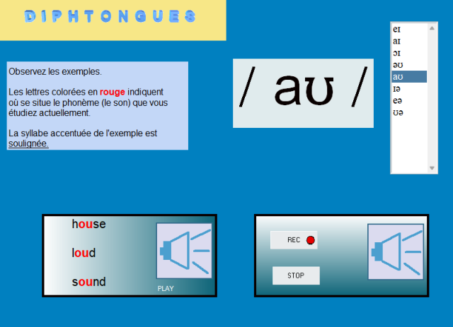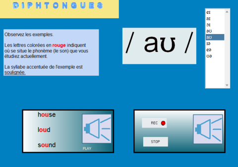 HearSay lab lets you learn and practise the phonetics alphabet in English so that you can dramatically improve your pronunciation skills !!Indeed, getting to know the phonetics alphabet will let you correctly interpret the phonetic transcription of ANY new word that you'll be checking in your dictionary, so that you'll be able to pronounce words that you'll never have heard before !The program offers two modules :In the "Learn" Module, you'll familiarize yourself with each phonetics symbol , its pronunciation within short key-words , and you'll have the opportunity to record yourself and compare your pronounciation to the model.In the "Practice" Module, a simple and fun game will ask you to match a recorded word with the correct symbol.Avec HearSay Lab, découvrez, écoutez et enregistrez les sons / phonèmes de l’anglais , pour améliorer vos compéténces orales : -compréhension orale de l’anglais-expression orale